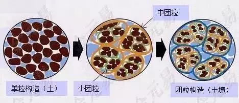 如果团粒结构受到破坏,构成它的小分子团就不存在了,土就成了面儿状的,堆积到一块,就容易造成土壤的板结。很多农民以为土壤板结就是单纯的土壤变硬了,实际上是因为土壤物理结构遭到了破坏,才造成了板结。